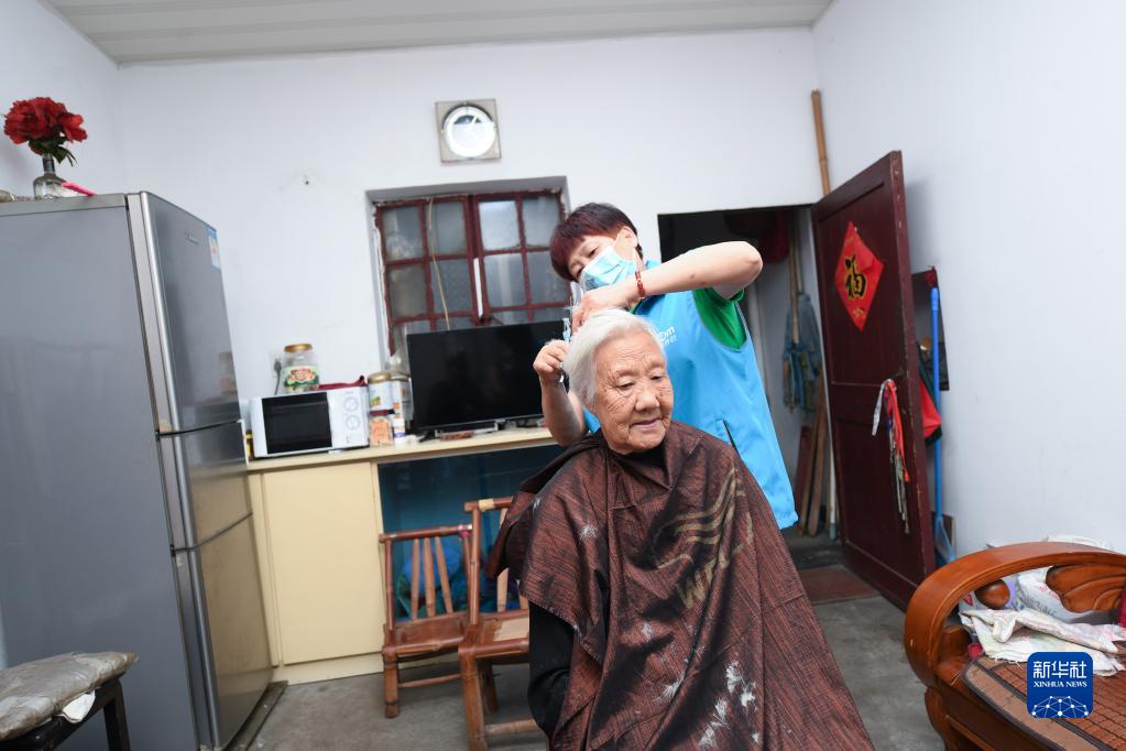 5月30日,志愿者上門(mén)給上強社區的老年人免費理發(fā)。
