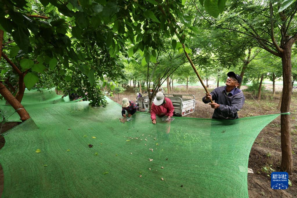 5月30日,在石家莊市欒城區后牛村桑葚采摘園,工作人員采收桑葚。