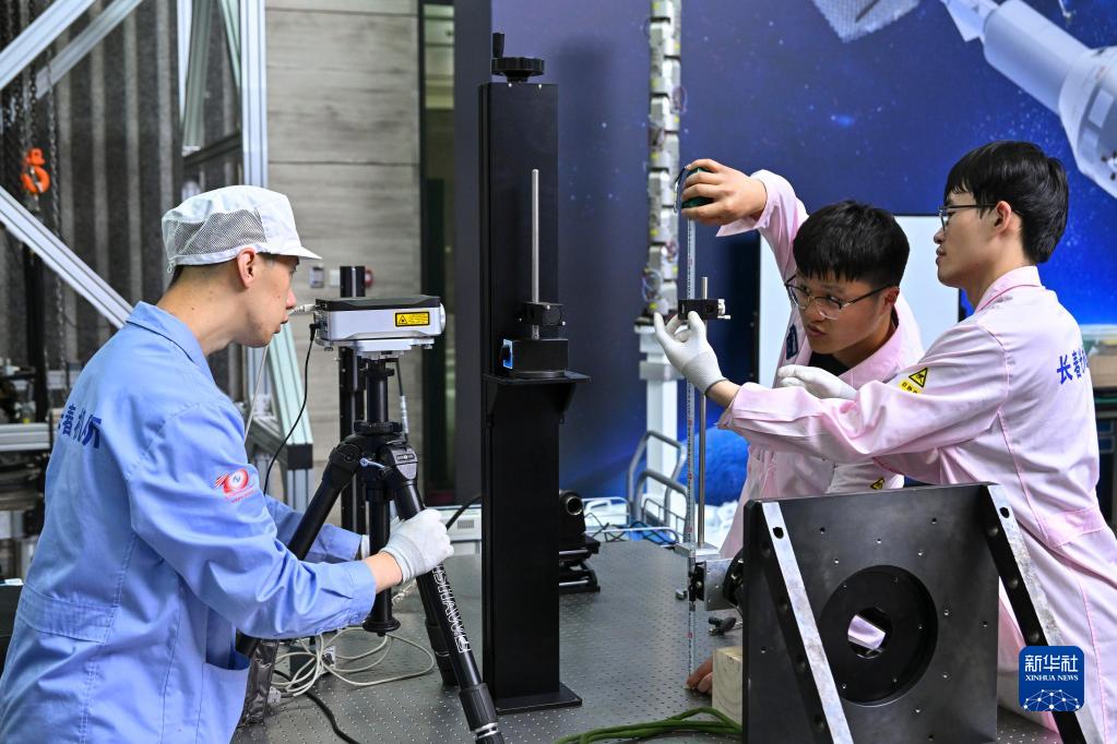 中國科學(xué)院空間光學(xué)系統在軌制造與集成重點(diǎn)實(shí)驗室科研人員進(jìn)行實(shí)驗調試(5月25日攝)。