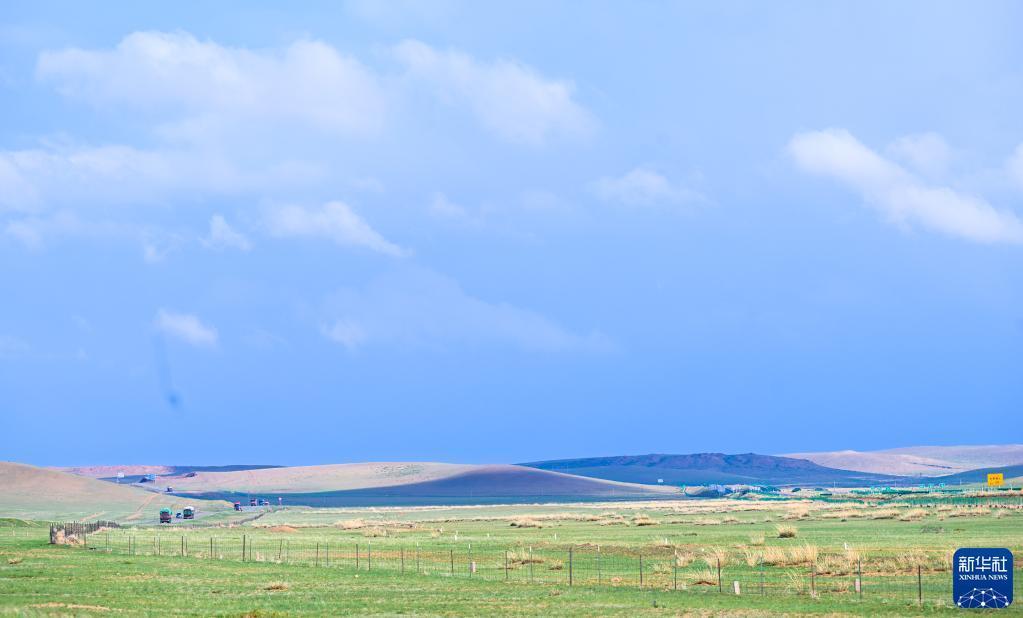 這是5月30日拍攝的內蒙古錫林郭勒盟蘇尼特右旗境內的草原風(fēng)光。