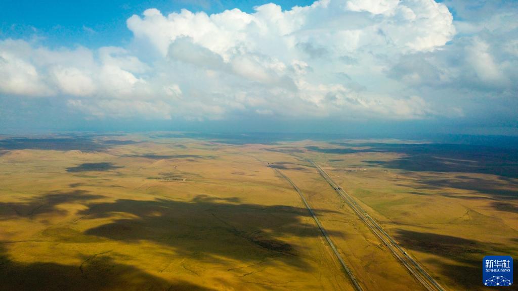 這是5月30日拍攝的內蒙古錫林郭勒盟蘇尼特右旗境內的草原風(fēng)光(無(wú)人機照片)。