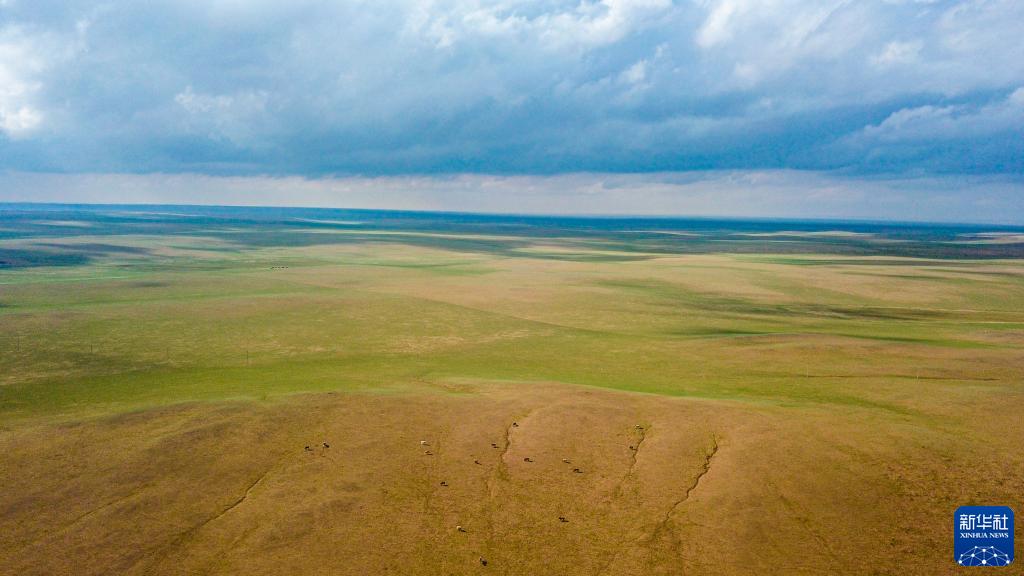 這是5月30日拍攝的內蒙古錫林郭勒盟蘇尼特右旗境內的草原風(fēng)光(無(wú)人機照片)。