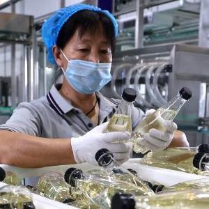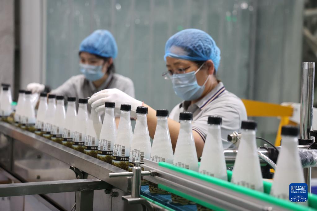 5月30日,在山東省濱州市陽(yáng)信縣的一家梨醋生產(chǎn)企業(yè)車(chē)間內,工人生產(chǎn)梨醋訂單。