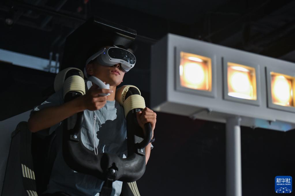 這是5月30日在科幻產(chǎn)業(yè)新技術(shù)新產(chǎn)品展上拍攝的火星探測沉浸式體驗設備。
