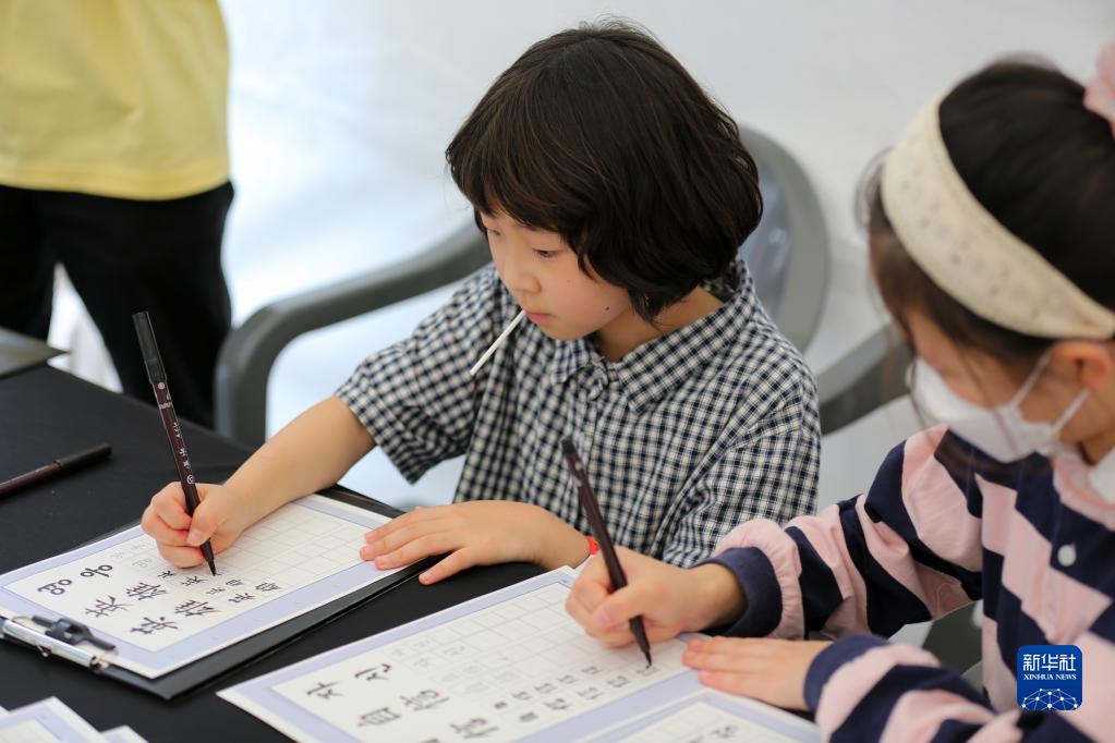 5月30日,在韓國首爾舉辦的“中日韓合作之日”慶?;顒?dòng)中,兒童體驗書(shū)法。
