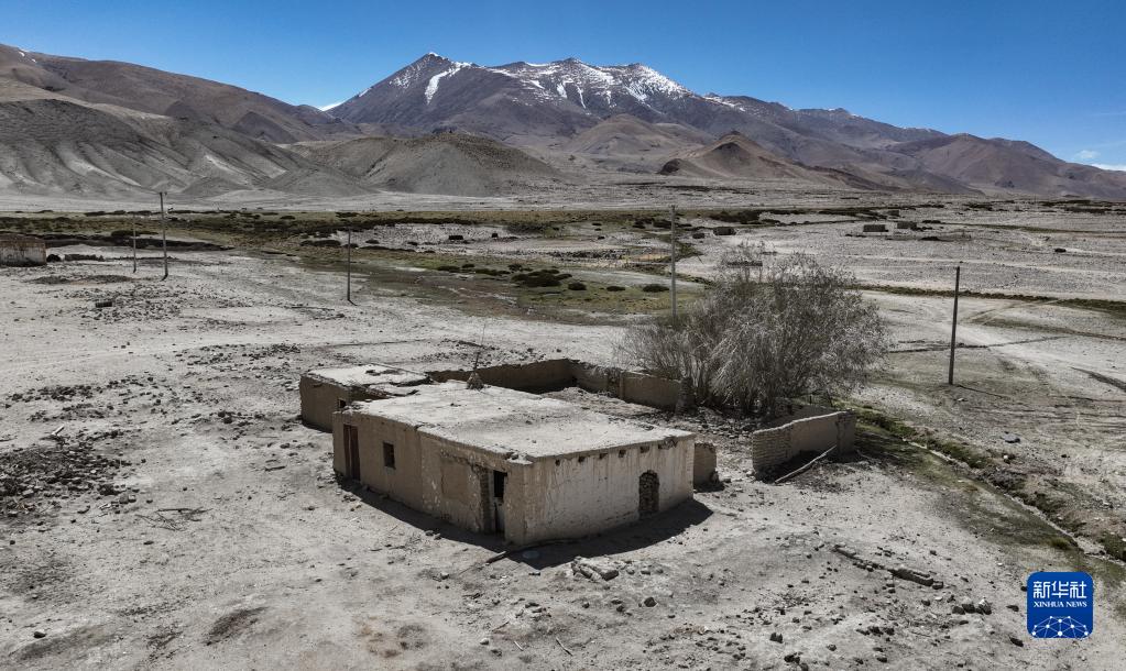 這是5月28日拍攝的典角村“二代房”(無(wú)人機照片)。跟“一代房”相比,“二代房”顯得更加整齊,房子后面還有一個(gè)用土墻圍起來(lái)的院子,可以把牲畜圈在里面。屋頂是用木棍先鋪一層,然后再覆蓋上泥土。新華社記者 晉美多吉 攝
