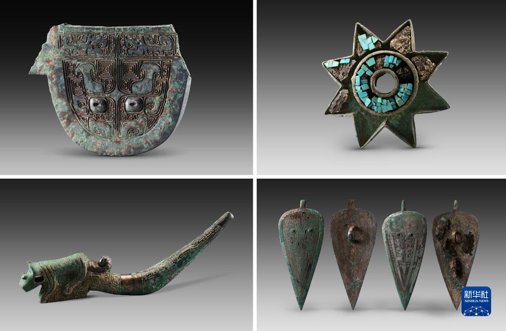 陜西清澗寨溝遺址出土的部分青銅器(拼版照片)。