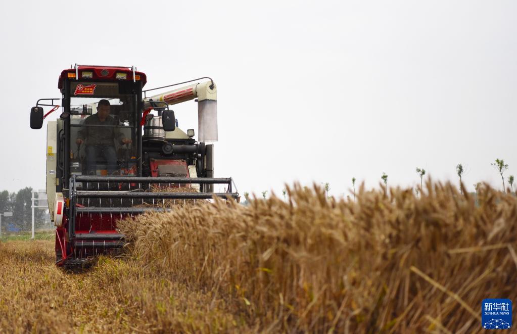 5月30日,在河南省駐馬店市正陽(yáng)縣銅鐘鎮,收割機在搶收小麥。