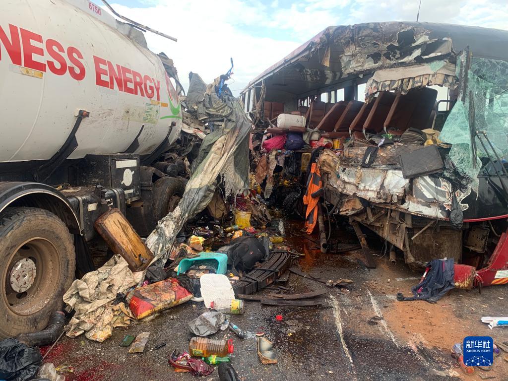加納應急管理部門(mén)30日說(shuō),一輛大客車(chē)當日在加納中部省一條高速公路上與一輛油罐車(chē)相撞,造成至少16人死亡、多人受重傷。新華社發(fā)