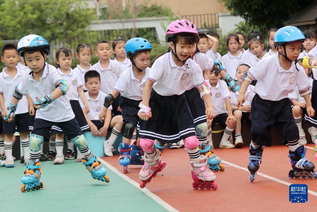5月31日,浙江省湖州市德清縣三橋幼兒園的孩子們在進(jìn)行輪滑競技表演。