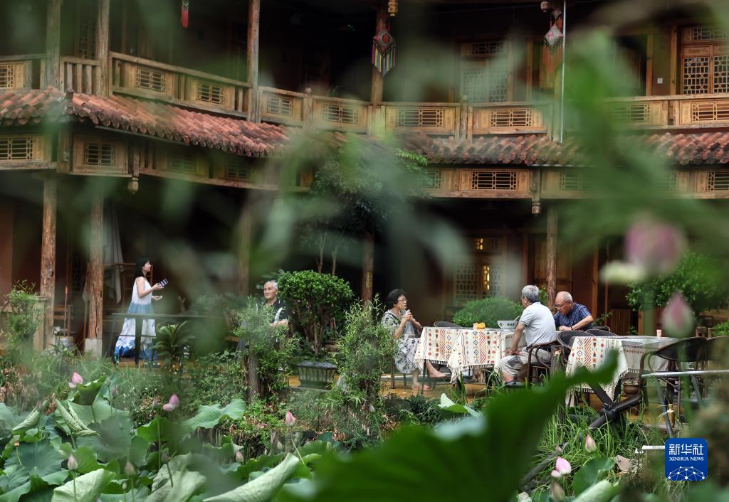 5月30日,游客在普者黑景區仙人洞村一家民宿休閑。