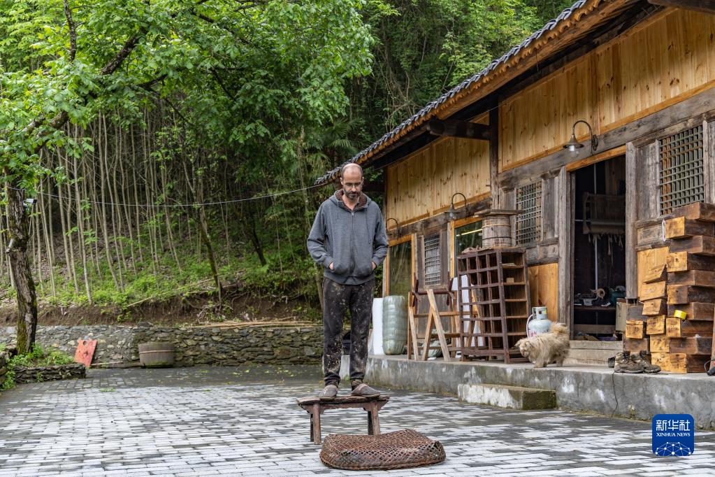 5月29日,在重慶市城口縣北屏鄉松柏村,文森·漆在自己的工作室外。