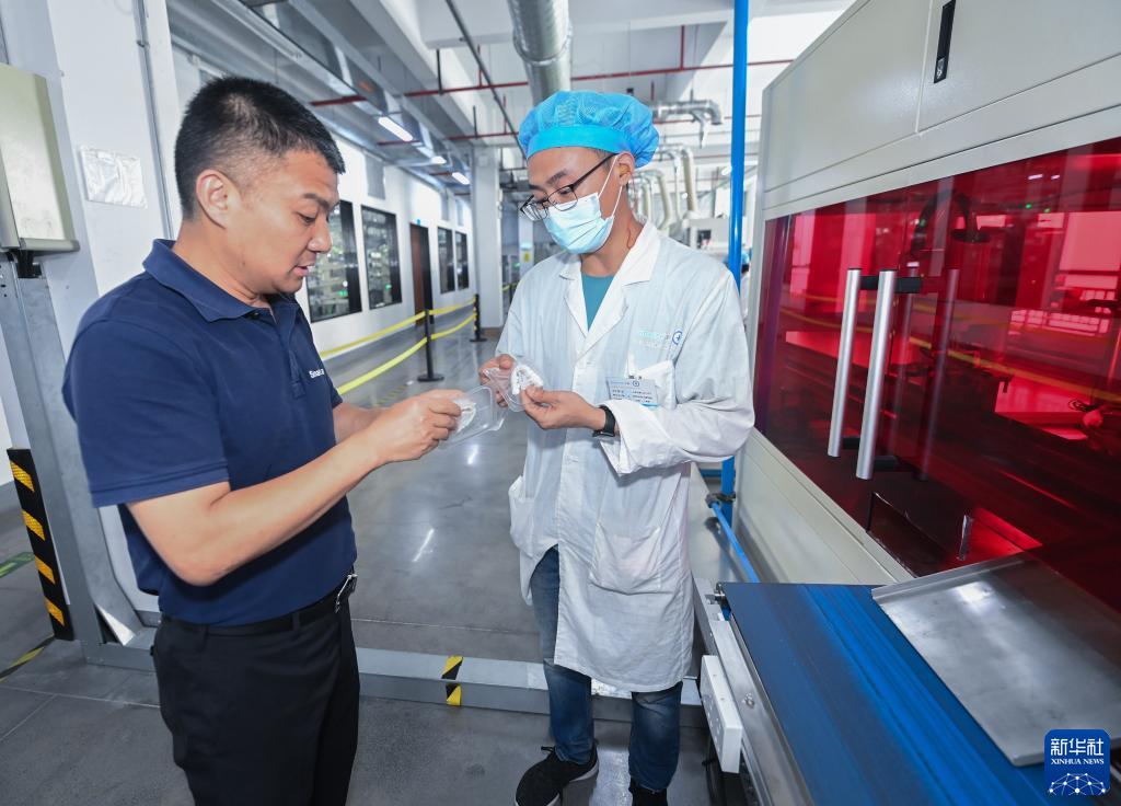 5月31日,浙江正雅齒科股份有限公司董事長(cháng)姚峻峰(左)在位于嘉興南湖高新區的公司車(chē)間內查看個(gè)性化定制式隱形正畸矯治器的生產(chǎn)。姚峻峰是畢業(yè)于英國赫爾大學(xué)的工商管理碩士,回國后創(chuàng )辦了正雅齒科公司。