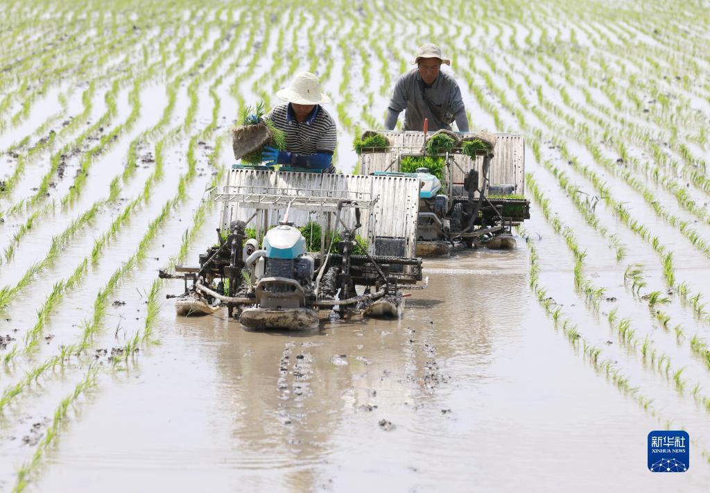 5月31日,河北省唐山市豐南區夏新莊村的農民在田間進(jìn)行插秧作業(yè)。