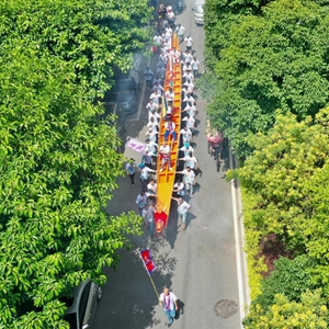5月31日,龍舟愛(ài)好者將新龍舟運轉到連江天后宮。