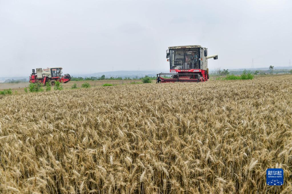 5月31日,在河南省洛陽(yáng)市偃師區大口鎮鐵村的麥田里,聯(lián)合收割機在收割小麥。