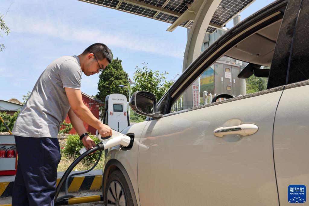 5月31日,居民在燕崖鎮朱家戶(hù)村的光伏儲能式充電站為電動(dòng)汽車(chē)充電。