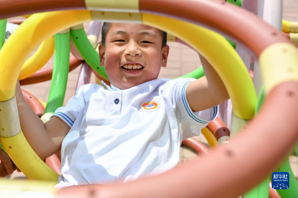 5月31日,在四平市聾啞學(xué)校,一位殘障學(xué)生進(jìn)行課間游戲。