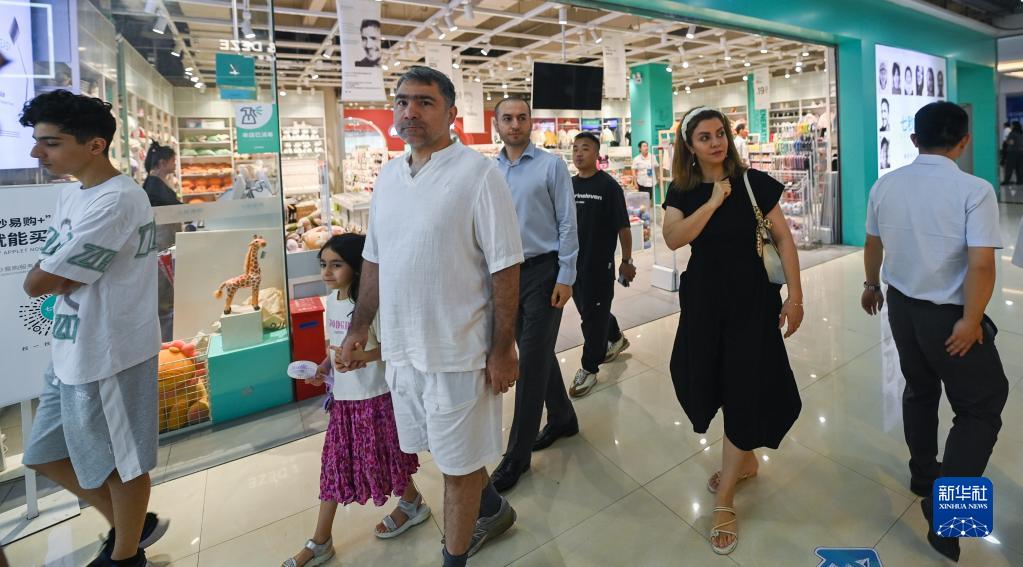 6月1日,外國客商在織里中國童裝城內選購童裝。