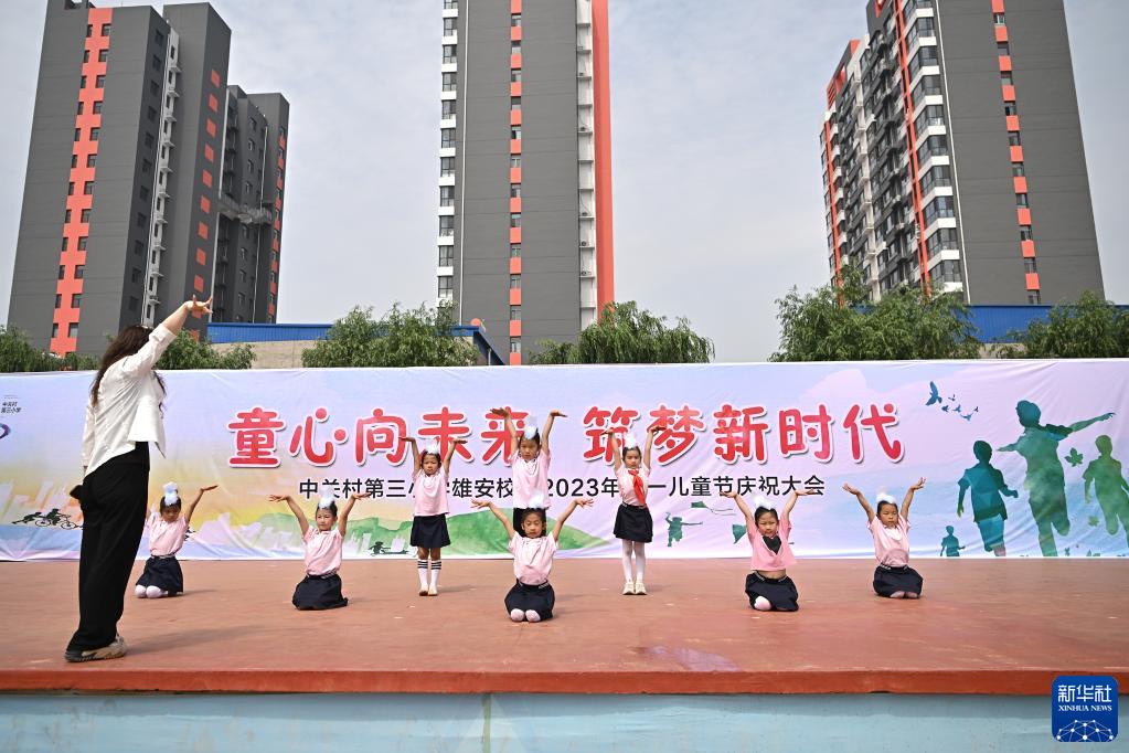5月31日,中關(guān)村第三小學(xué)雄安校區舞蹈社團的學(xué)生在老師的指導下為六一兒童節慶祝大會(huì )排練節目。