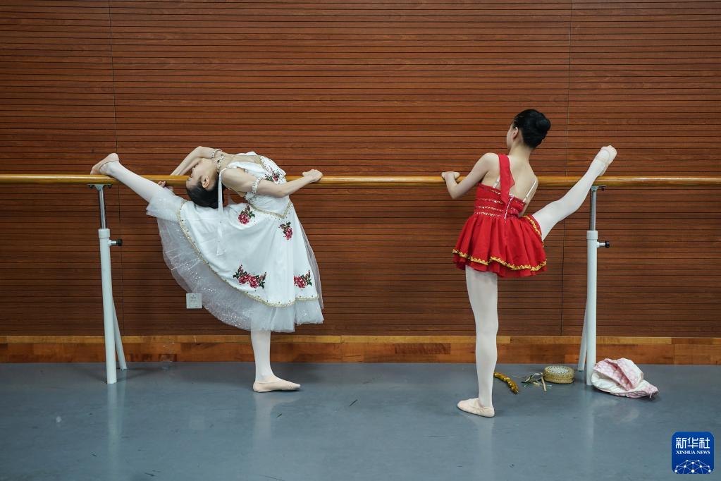 5月30日,遼寧芭蕾舞團附屬芭蕾舞蹈學(xué)校的學(xué)生在準備校內專(zhuān)業(yè)課的比賽。