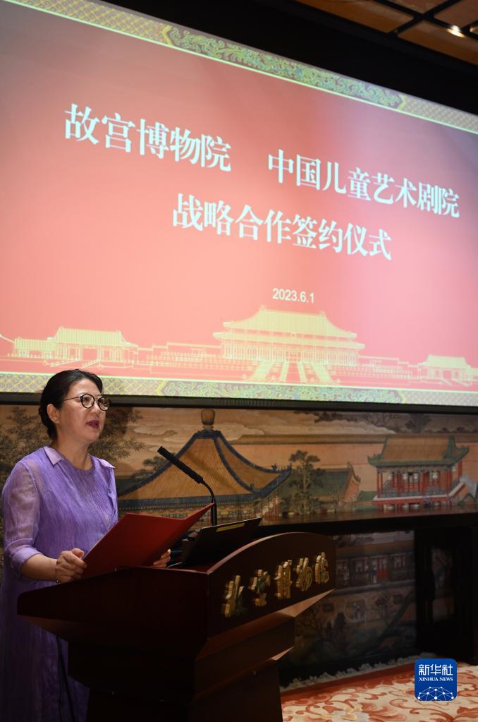 當日,故宮博物院與中國兒童藝術(shù)劇院在北京舉行戰略合作簽約儀式。雙方將在劇目創(chuàng )排、打造品牌、文創(chuàng )產(chǎn)品開(kāi)發(fā)等方面加強合作,攜手打造以故宮為題材的兒童戲劇精品,利用舞臺藝術(shù)形式,讓中華優(yōu)秀傳統文化走進(jìn)中國孩子的心里,也讓更多少年兒童走進(jìn)故宮博物院,走進(jìn)中國兒童劇場(chǎng)。