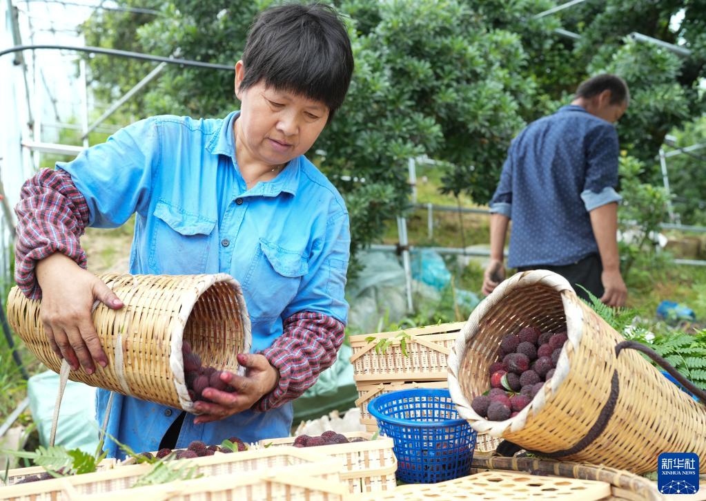 6月1日,在余姚市三七市鎮石步村,果農在大棚內包裝楊梅。