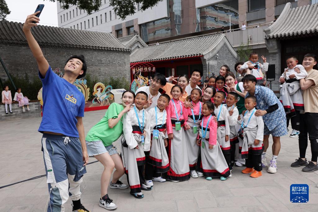 6月1日,來(lái)自玉樹(shù)州的孩子們在北京蒙藏學(xué)校舊址和中央民族歌舞團的演員合影。