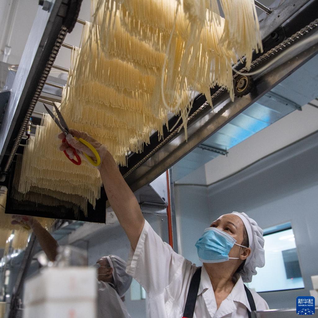6月1日,在位于重慶市大渡口區的井谷元食品科技有限公司生產(chǎn)車(chē)間內,工人在小面生產(chǎn)線(xiàn)上工作。