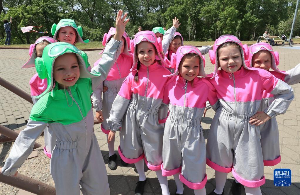 6月1日,孩子們在白俄羅斯首都明斯克慶?!傲弧眹H兒童節。
