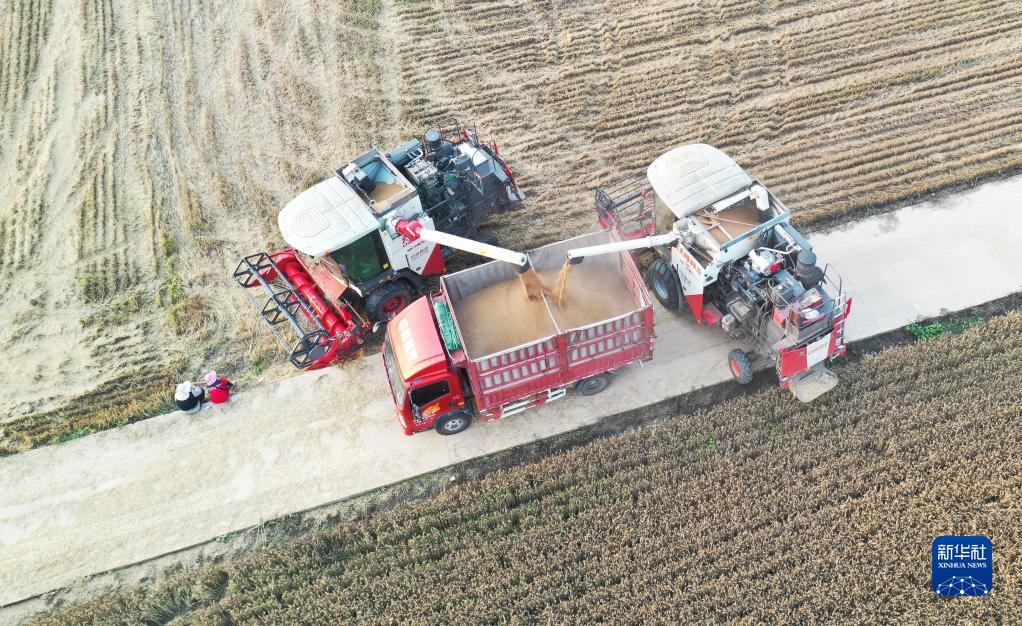 當日,在河南省駐馬店市上蔡縣,當地抓住晴好天氣搶收小麥。新華社記者 張浩然 攝