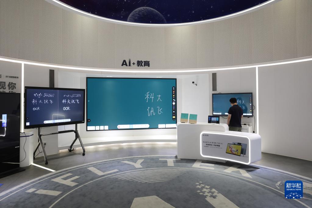 5月30日,在合肥科大訊飛人工智能體驗館,參觀(guān)者體驗應用于教育行業(yè)的人工智能產(chǎn)品。