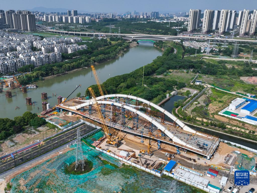 這是6月2日拍攝的南京梅苑南路跨秦淮新河大橋施工現場(chǎng)(無(wú)人機照片)。