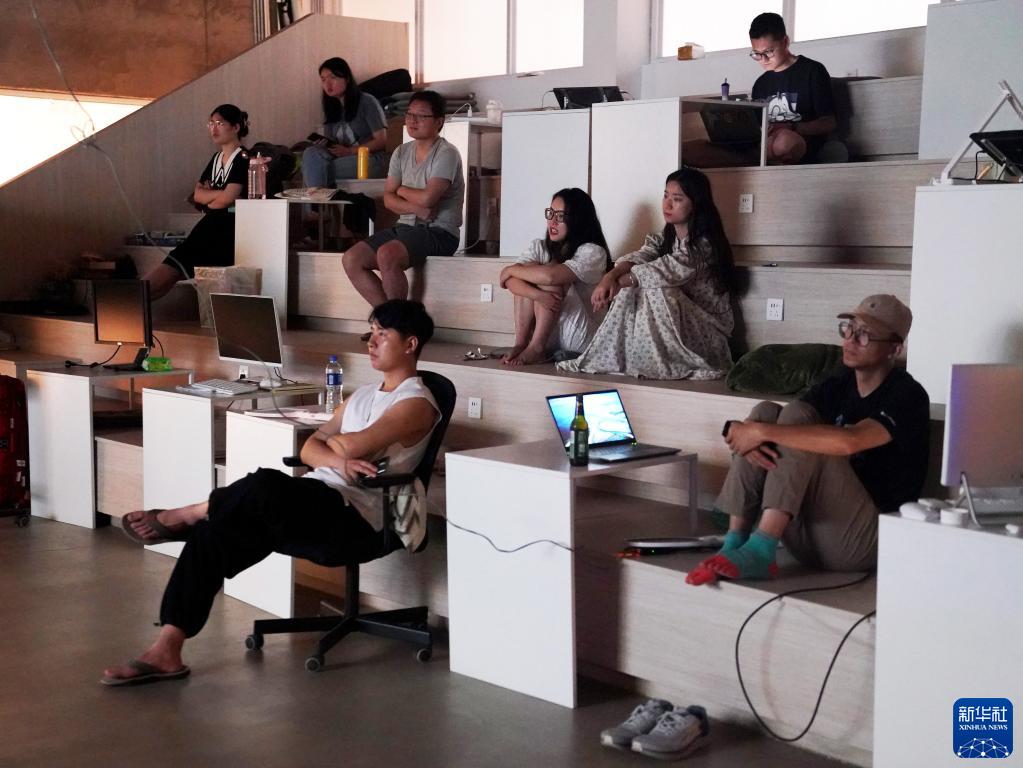 6月1日晚,“數字游民”在集體活動(dòng)中看電影。