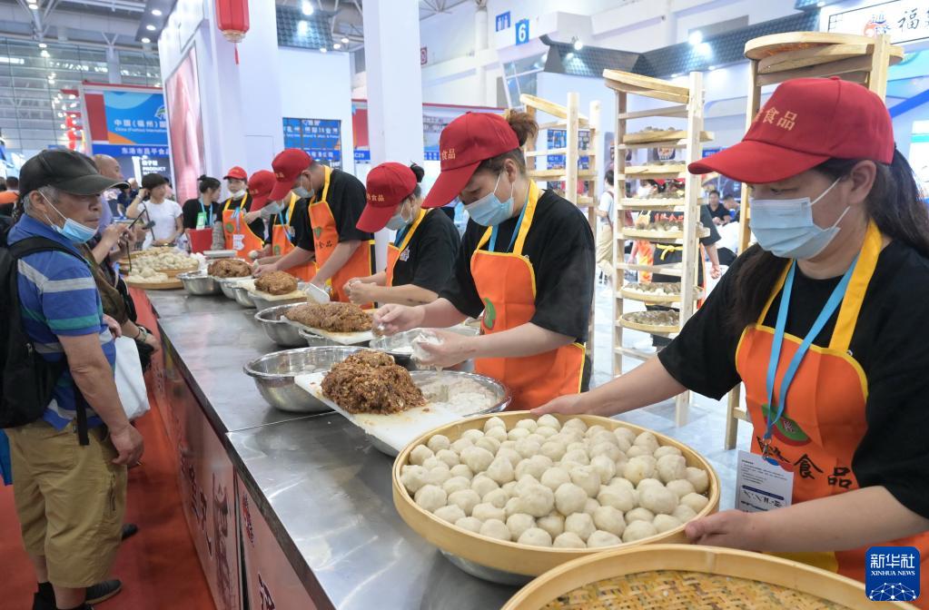 6月2日,工作人員在中國(福州)國際漁業(yè)博覽會(huì )現場(chǎng)制作“福州魚(yú)丸”。