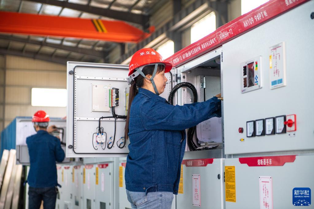6月2日,在位于婁底經(jīng)開(kāi)區的湖南樂(lè )立保電氣有限公司,工人在生產(chǎn)配電柜。