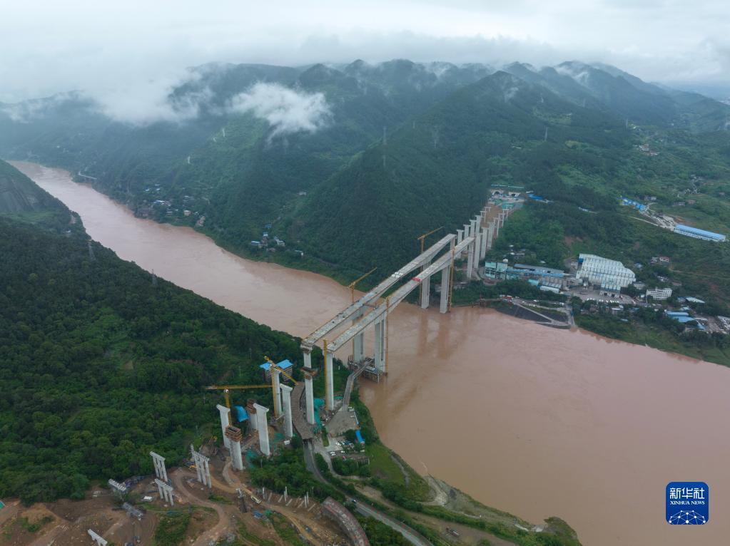 這是6月2日拍攝的重慶渝武高速公路復線(xiàn)觀(guān)音峽嘉陵江特大橋(無(wú)人機照片)。