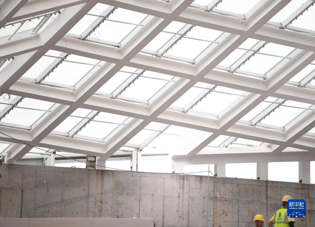 6月2日,工人在白鵝潭大灣區藝術(shù)中心進(jìn)行內部裝修。