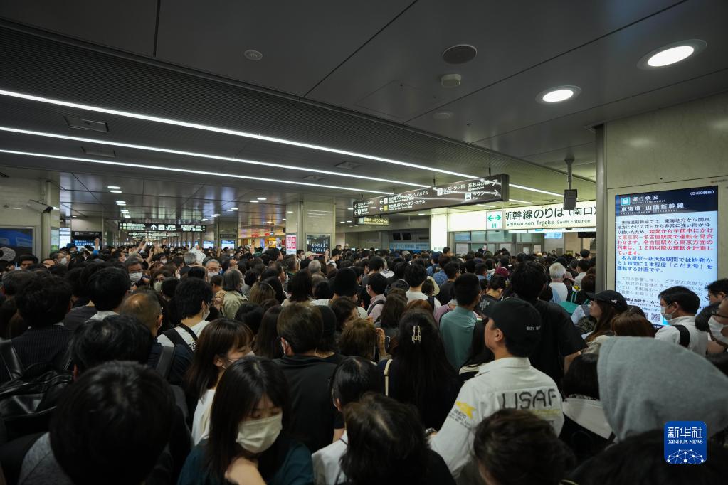 6月3日,大量乘客在日本名古屋車(chē)站等待新干線(xiàn)開(kāi)車(chē)。