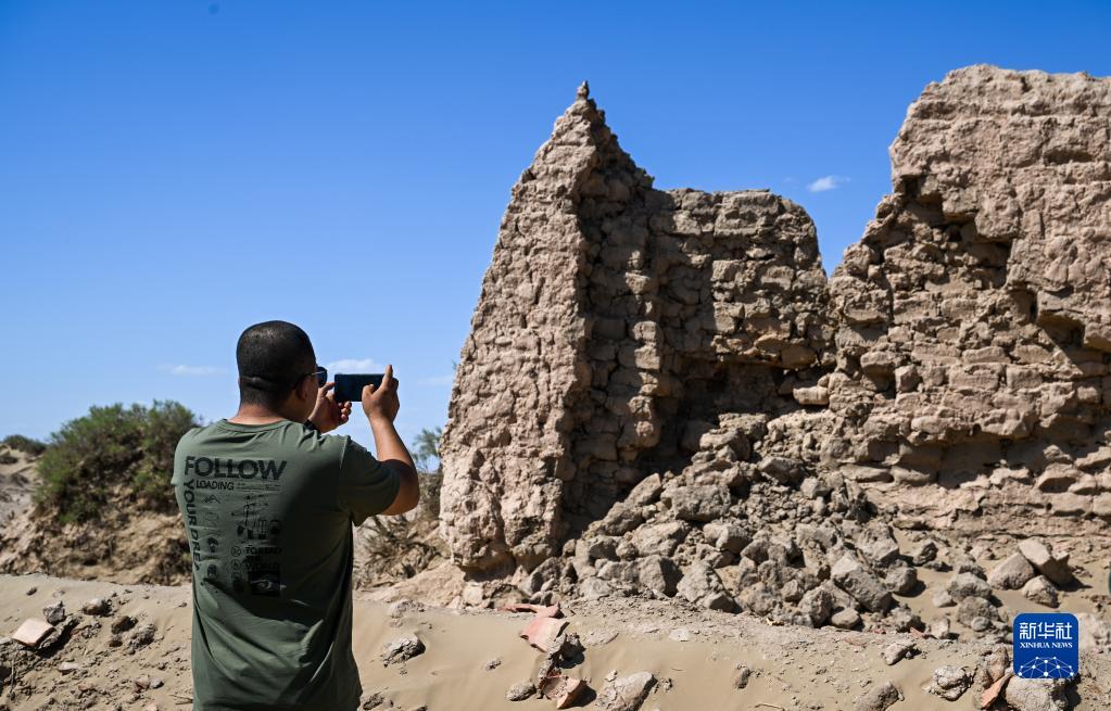 6月2日,額濟納旗文物保護中心工作人員拍攝紅廟遺址坍塌情況。