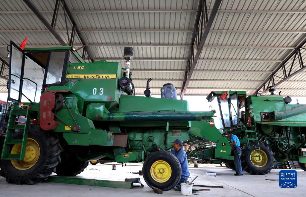 6月2日,在河北省晉州市周家莊鄉,維修人員對即將“上崗”的農機進(jìn)行檢查維修。