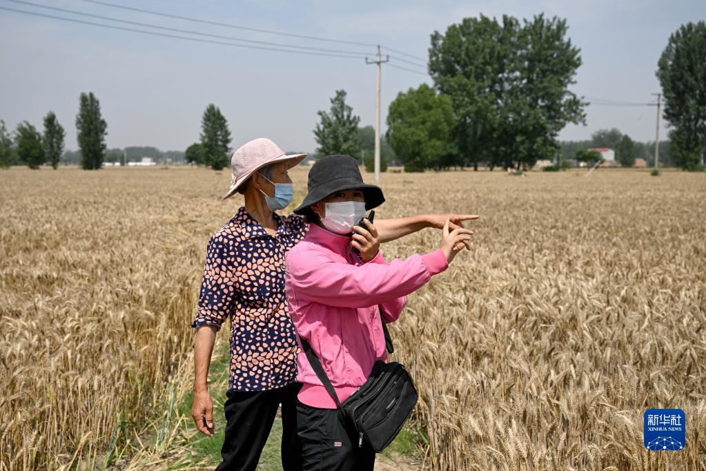 6月2日,在安徽省阜陽(yáng)市阜南縣許堂鄉劉崗村,陳麗娟(前)和村民溝通田塊地界。