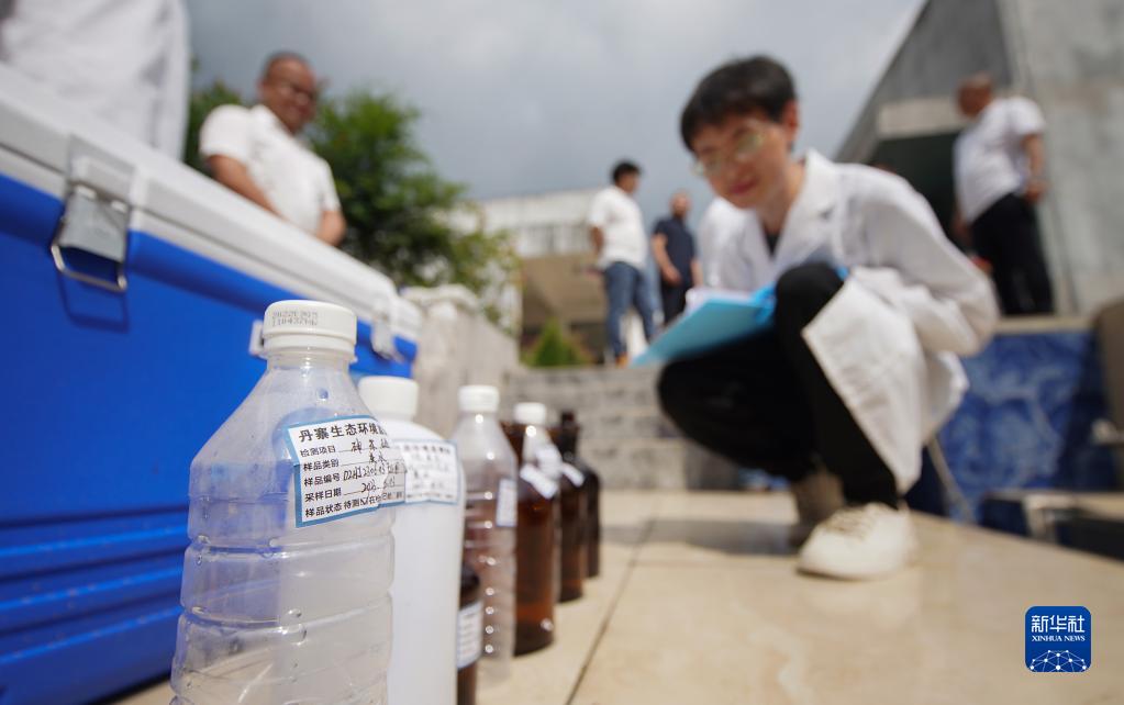 6月3日,貴州省黔東南苗族侗族自治州丹寨縣金鐘片區污水處理廠(chǎng)舉行開(kāi)放日活動(dòng),市民觀(guān)看工作人員進(jìn)行采樣監測工作。