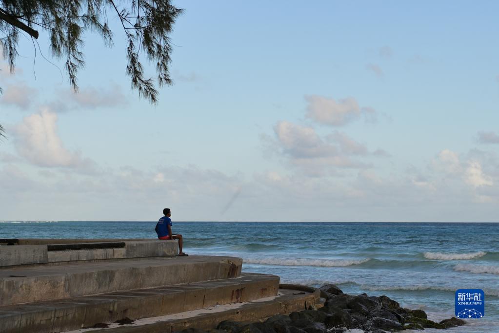 5月29日,一名男子坐在巴巴多斯首都布里奇敦的一處海岸邊。