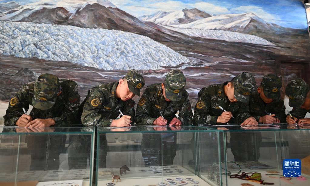 6月4日,武警青??傟牶N髦ш牴俦凇伴L(cháng)江1號”郵局內寫(xiě)明信片,為家人送去來(lái)自長(cháng)江源頭的祝福。