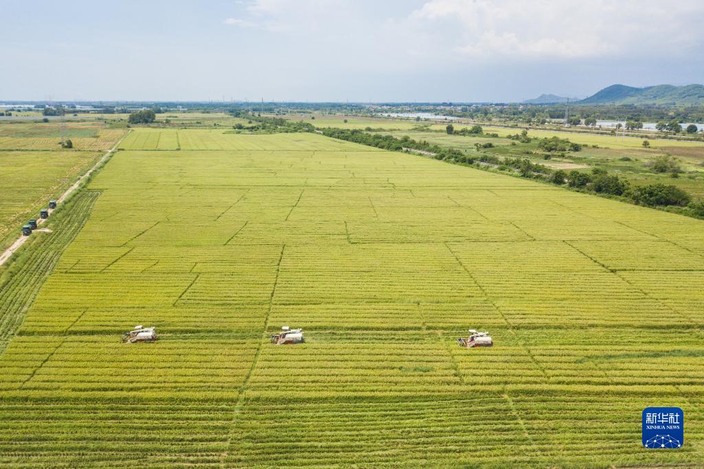 新華全媒+丨海南東方:夏收在孕育希望的田野