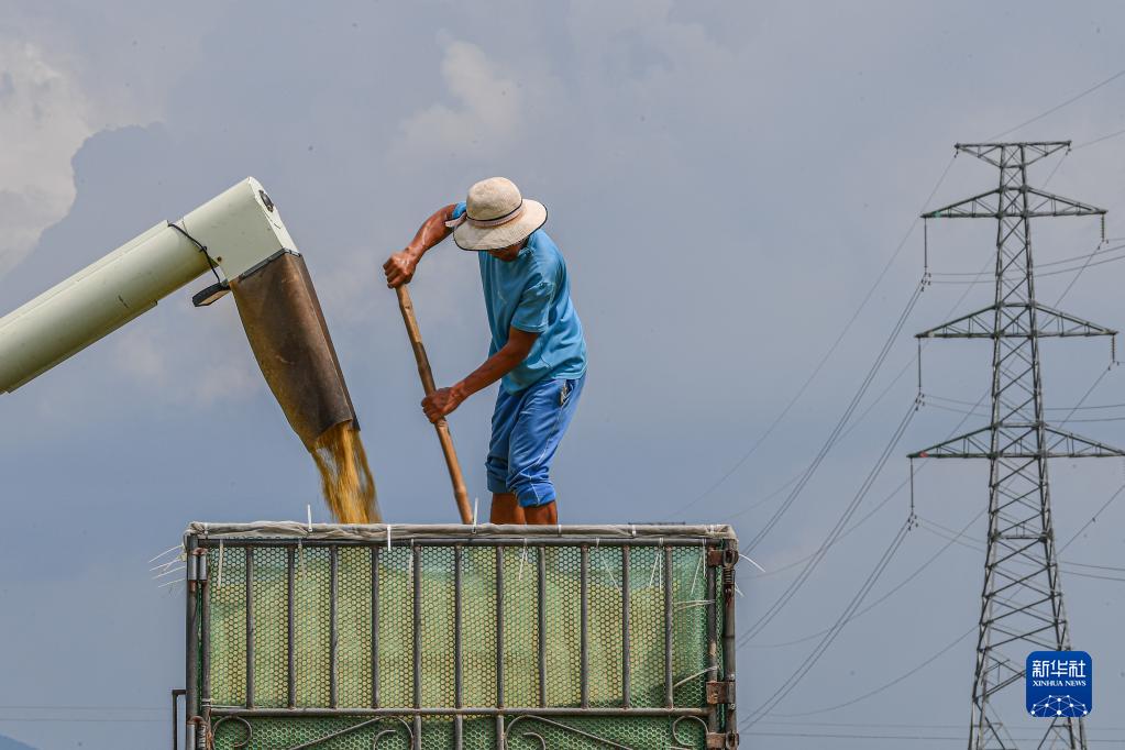 新華全媒+丨海南東方:夏收在孕育希望的田野