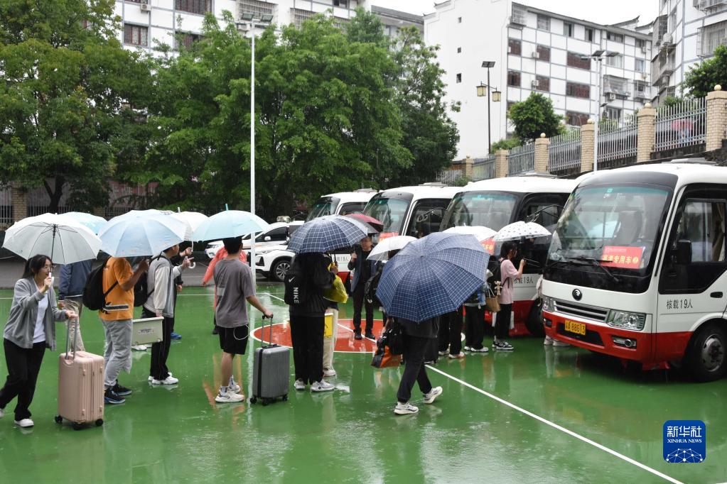 6月5日,重慶市巫山縣大昌中學(xué)高三學(xué)生有序乘坐中巴車(chē),他們將沿巫(山)大(昌)高速快車(chē)道直赴縣城,準備參加2023年高考。