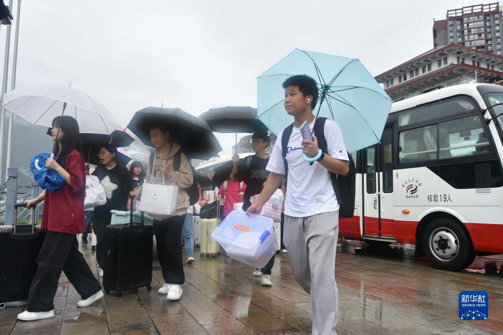 6月5日,重慶市巫山縣大昌中學(xué)赴考高三學(xué)生乘坐的中巴車(chē)到達駐地酒店,同學(xué)們有序下車(chē)。