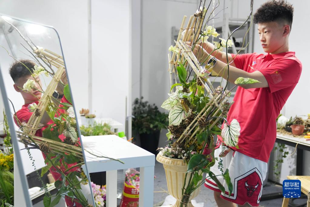 6月5日,選手在進(jìn)行花藝項目比賽。